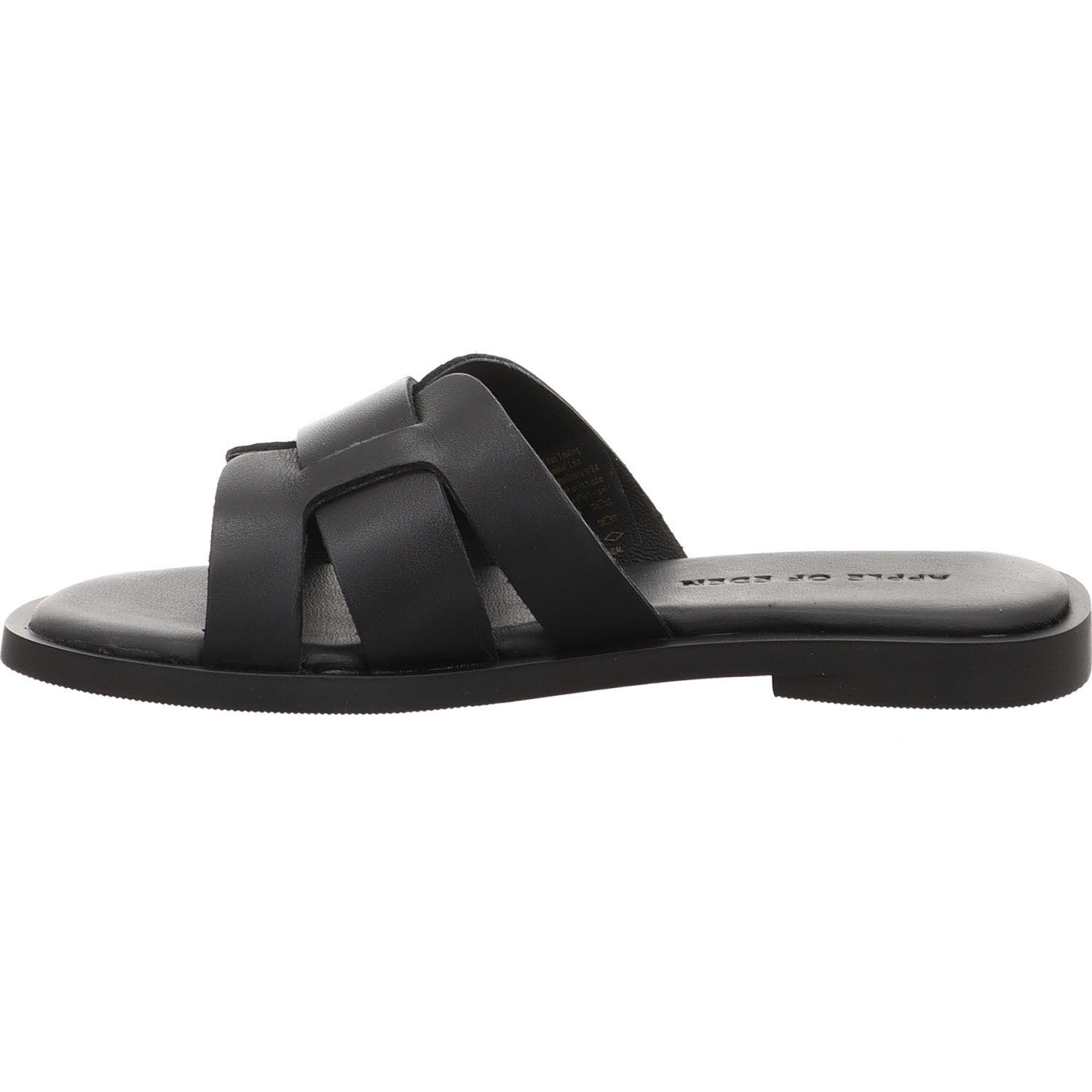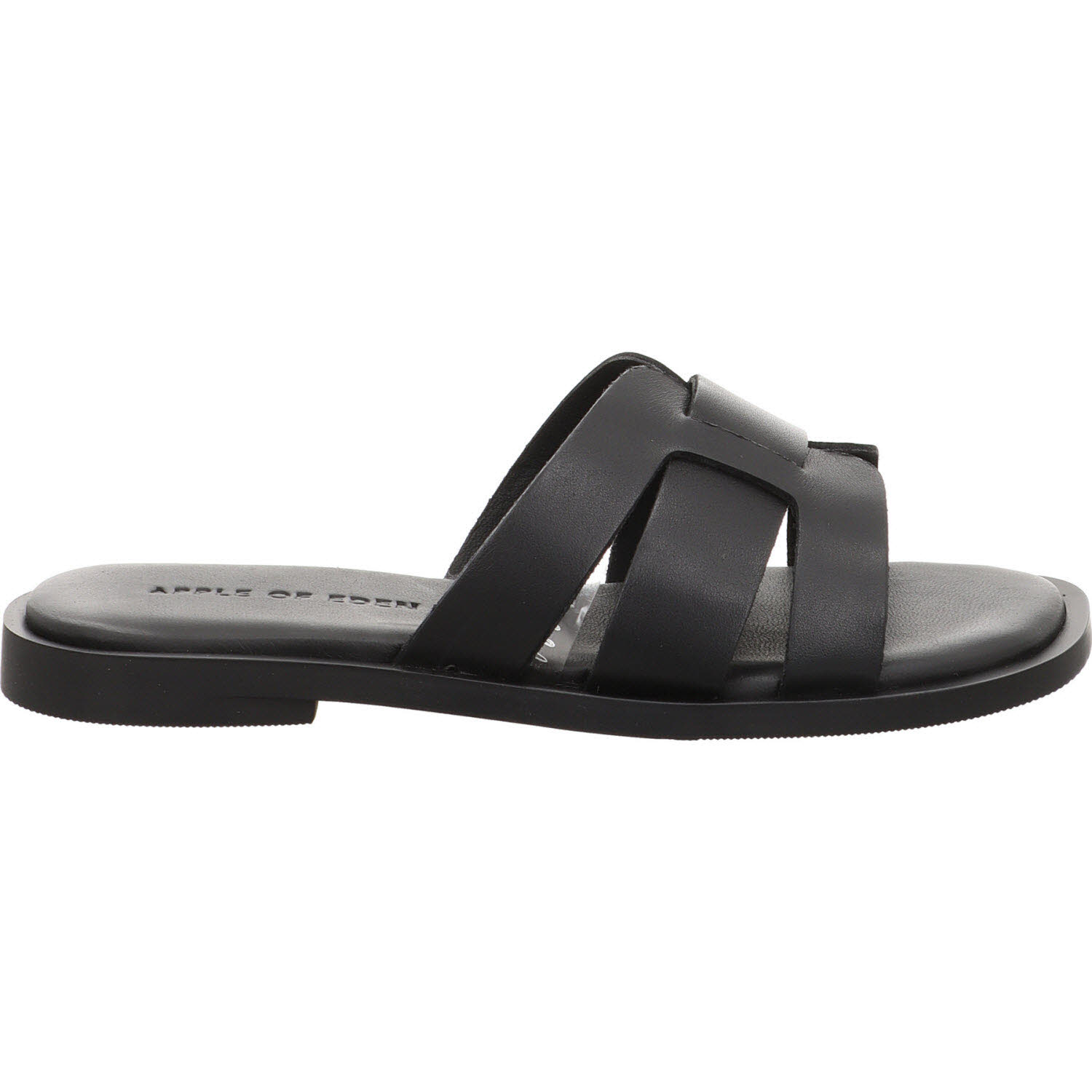 Wenn Velours zu lässig ist: die Apple of Eden ALYCIA Pantolette in Schwarz aus glattem Leder. Die glatte Oberfläche wirkt formaler und passt ins Büro, zum Abendessen, zum Business-Lunch – Kontexte, in denen eine Velours-Pantolette underdressed wäre. Slip-On, Lederfutter, Lederdecksohle, flache Sohle. Der cleane Look kommt ohne jedes Detail aus.