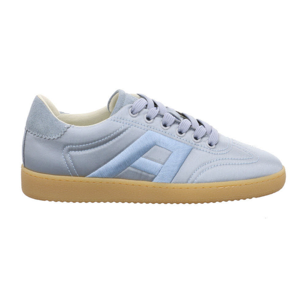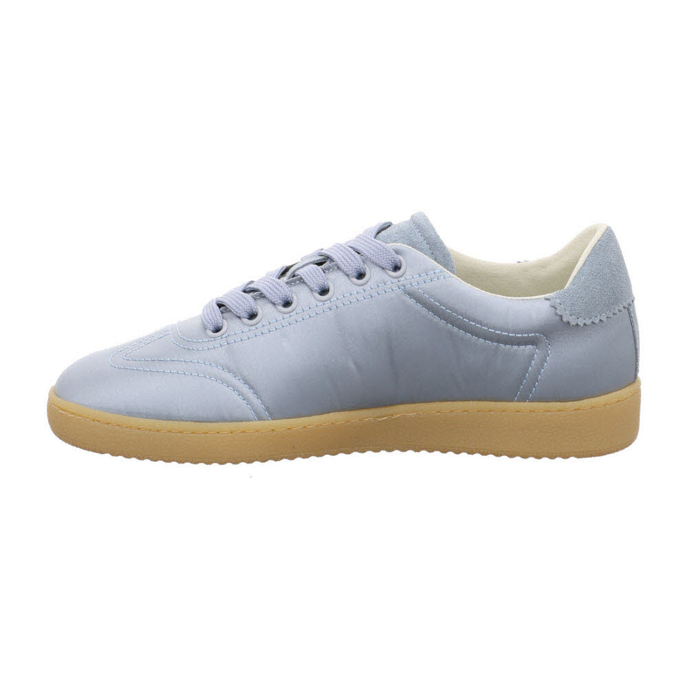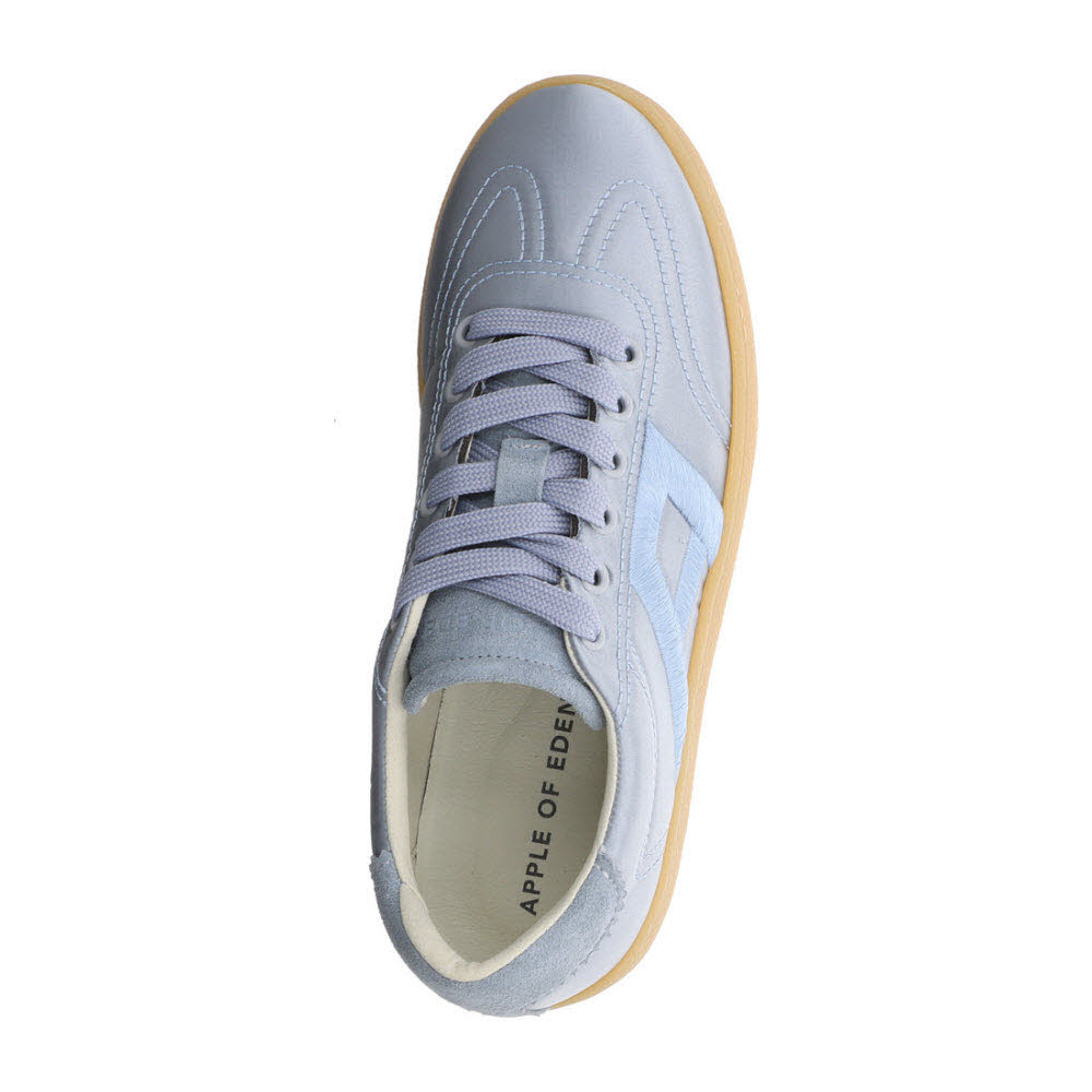 Küsten-Look: Der Apple of Eden ANYA Sneaker SS26-ANYA 78 in CELESTE bringt Leichtigkeit in den Frühling – Satin-Finish und Materialmix auf Veloursleder, dazu weiches Lederfutter und Lederdecksohle und eine leichte Sohle für sichere Schritte für Terrassenabend und Kurztrip; Für einen zweiten Look im Koffer: DEBRA Loafer (SS26-DEBRA 1.1) und IVEE Pantolette (SS26-IVEE 87).