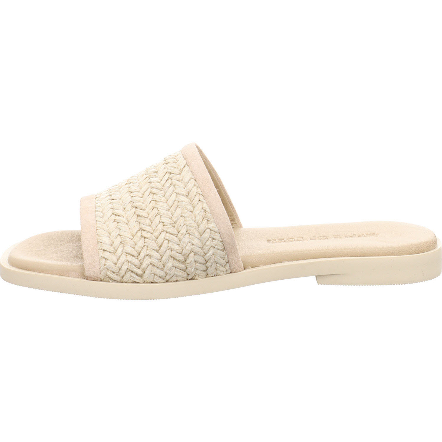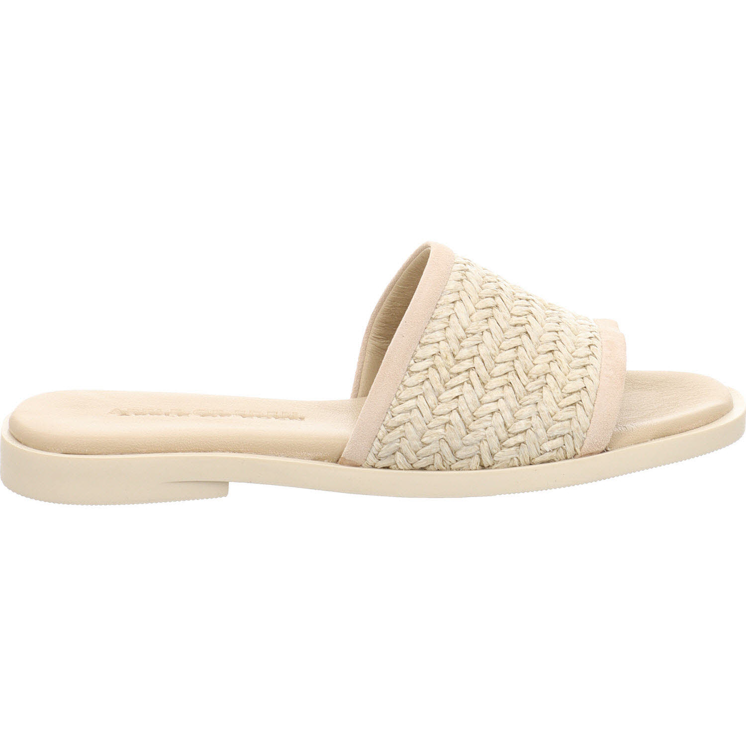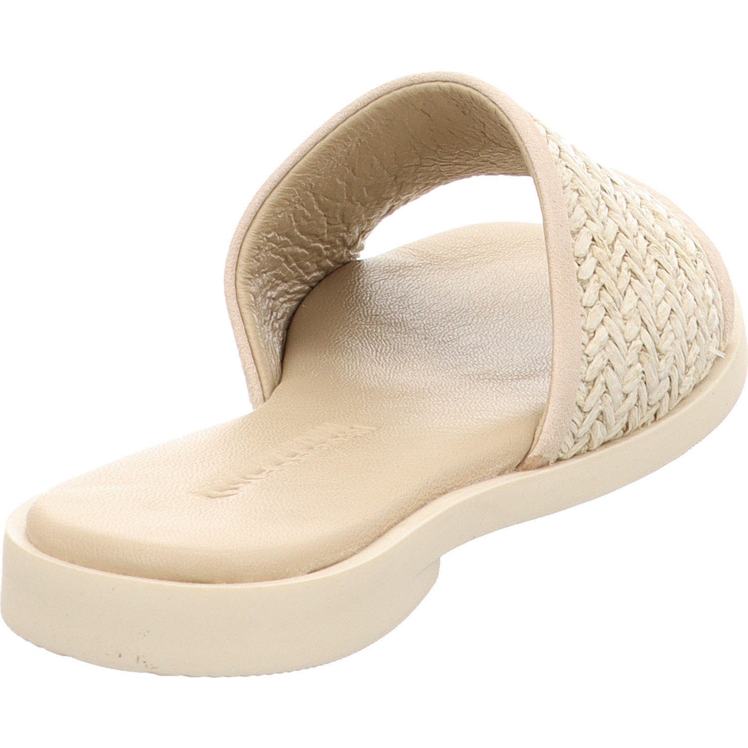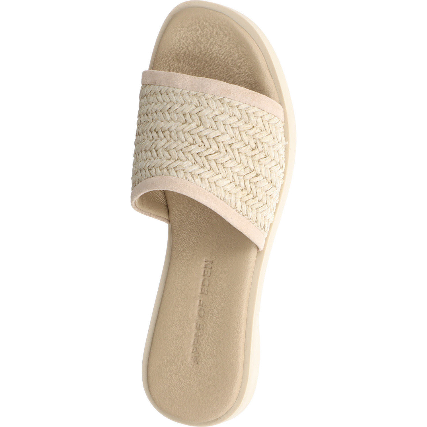 Noch heller als Taupe: die Apple of Eden ARIANA Pantolette in Sahara aus gewobener Raffia. Das Material wirkt naturnah, fast wie unbehandeltes Stroh, und passt zu hellen Erdtönen. Lederfutter innen, flache Sohle. Die Sommervariante für Frauen, die bei Hitze keine Lederschuhe tragen wollen, aber trotzdem etwas Schönes am Fuß haben möchten.