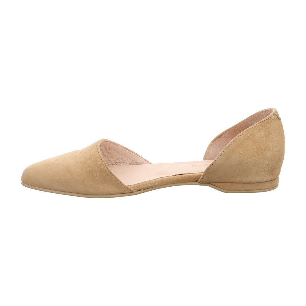 Küsten-Glück: Der Apple of Eden BLONDIE Loafer SS26-BLONDIE 97 in CAPPUCCINO bringt Velours-Touch in den Frühling-Alltag; Ziegenveloursleder, weiches Lederfutter und Lederdecksohle und eine Sohle mit unkompliziertem Street-Grip sorgen für ein Gefühl, das lässig im Alltag und fein im Detail, bei Marktbesuch und Museumsrunde; Wer Abwechslung mag, kombiniert MIYA Sneaker (SS26-MIYA 31) mit REMI Sandale (SS26-REMI 41).