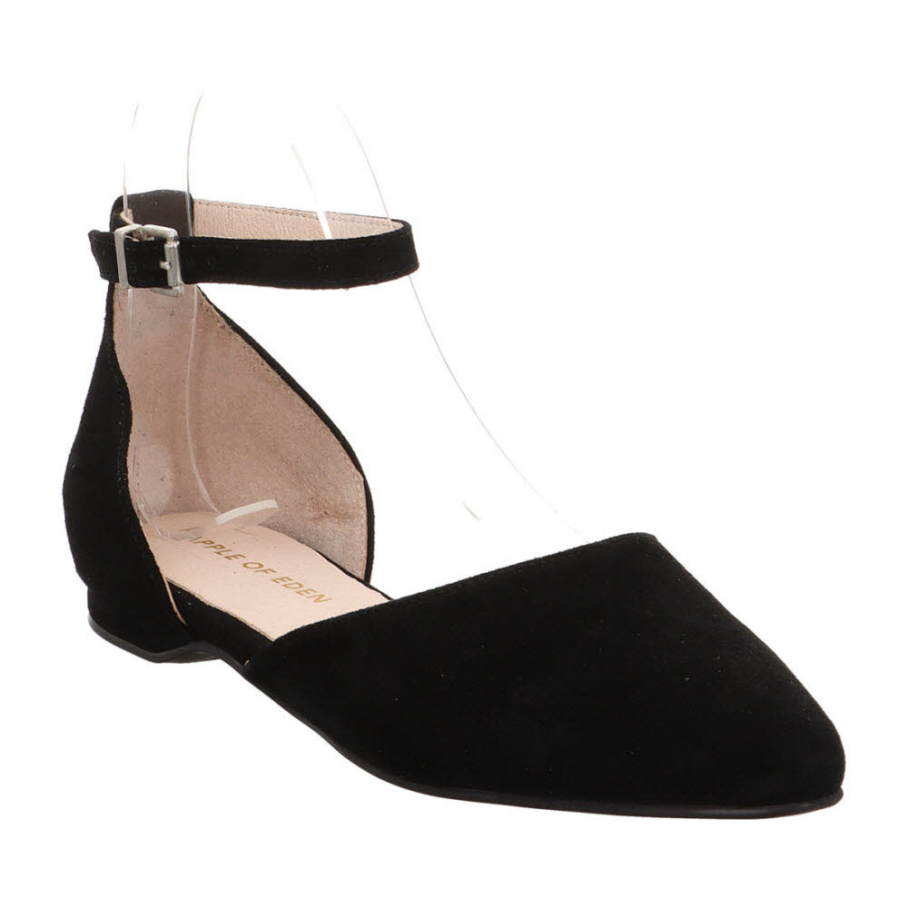Stadt-Vibe: Der Apple of Eden BRUNA Loafer SS26-BRUNA 1 in BLACK setzt auf Velours-Touch und eine klare Form aus Ziegenveloursleder; innen wartet weiches Lederfutter und Lederdecksohle, unten eine stabile Laufsohle mit gutem Halt, gemacht für Picknick im Park und Shoppingrunde; Zum Weiterstylen: AGNIS Pantolette (SS26-AGNIS 31) plus MIYA Sneaker (SS26-MIYA 1).