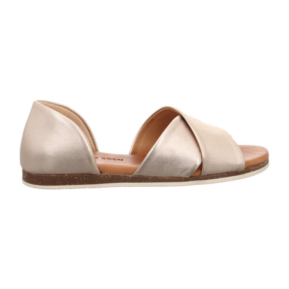 Stadt-Note: Der Apple of Eden CHIUSI Sandale SS25-CHIUSI 21 in CHAMPAGNE bringt Leichtigkeit in den Sommer – Metallic-Schimmer auf Metallic-Leder, dazu weiches Lederfutter und Lederdecksohle und eine leichte Sohle für sichere Schritte für Office-Day und Feierabendrunde; Als Ergänzung passen IRMA Pantolette (SS26-IRMA 40) sowie BAANI Mokassin (SS26-BAANI 97).