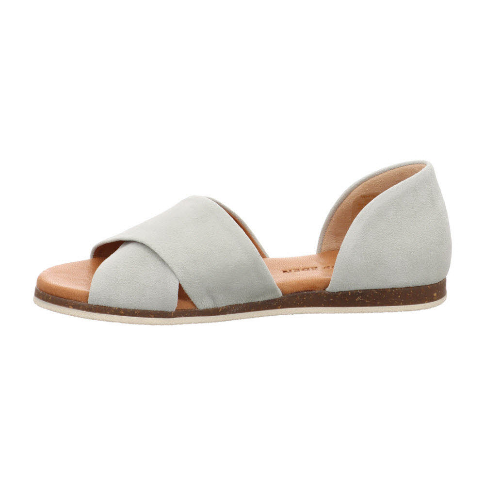 Stadt-Takt: Der Apple of Eden CHIUSI Sandale SS26-CHIUSI 54 in SKY GREEN bringt Leichtigkeit in den Sommer – Velours-Touch auf Ziegenveloursleder, dazu weiches Lederfutter und Lederdecksohle und eine stabile Laufsohle mit gutem Halt für Urlaubsweg und Abendspaziergang; Für einen zweiten Look im Koffer: IVEE Pantolette (SS26-IVEE 21) und ANYA Sneaker (SS26-ANYA 4).