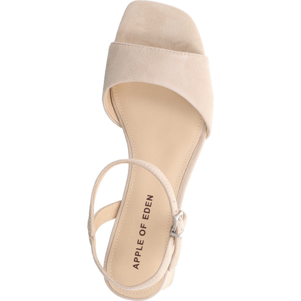 Ivory und zierliche Riemen: die Apple of Eden FLORE Sandale für sommerliche Anlässe, die etwas Feineres verlangen als einen Standard-Slip-On. Ziegenveloursleder mit Schnalle, Lederfutter, Lederdecksohle, flache Sohle. Passt zu Leinen, Pastellkleid, Creme-Hose.