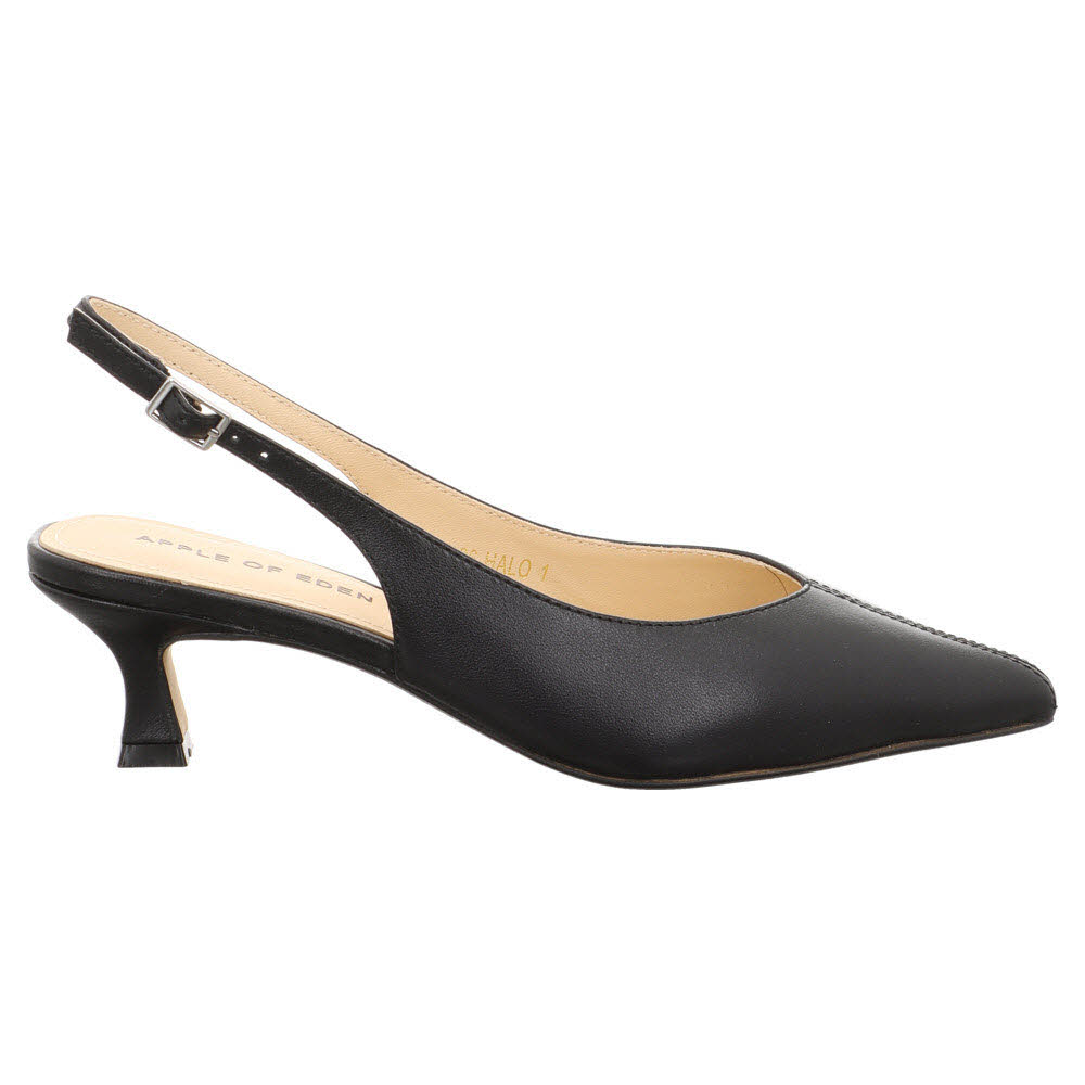 Garten-Moment: Der Apple of Eden HALO Slingback SS26-HALO 1 in BLACK spielt Leder-Look auf glattes Ziegenleder-Basis aus; weiches Lederfutter und Lederdecksohle sorgt für Komfort, eine dämpfende Sohle für den Alltag für Standfestigkeit bei Altstadtpflaster und Küstenpromenade; Wer Abwechslung mag, kombiniert OLIVIA Sneaker (SS26-OLIVIA 15) mit BLONDIE Loafer (SS26-BLONDIE 41).