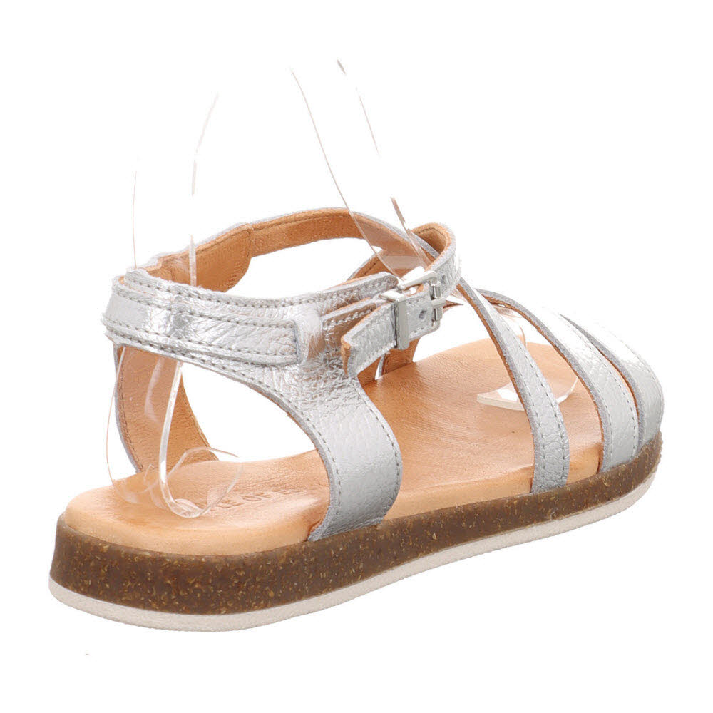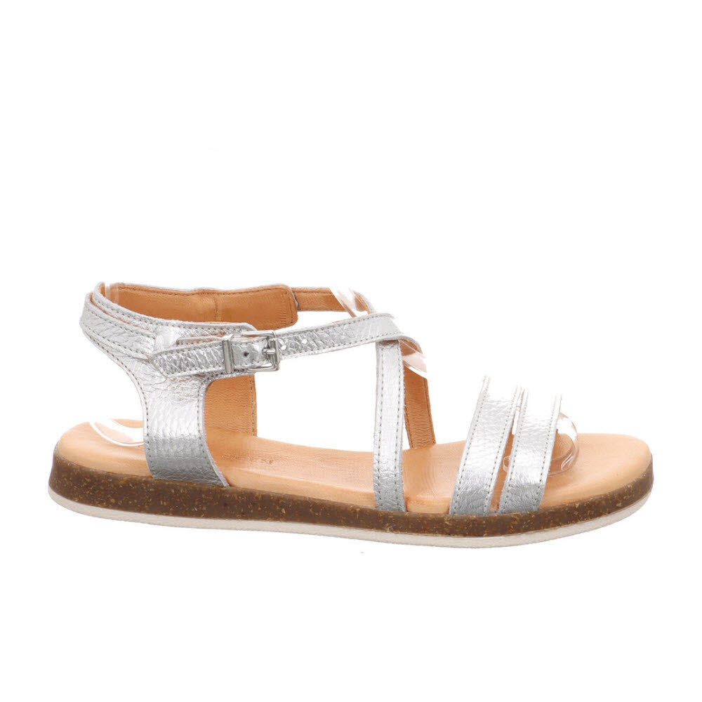 Garten-Takt: Der Apple of Eden IRINA Sandale SS26-IRINA 19 in PLATA bringt Metallic-Schimmer und genarbte Haptik in den Sommer-Alltag; Metallic-Leder, weiches Lederfutter und Lederdecksohle und eine leichte Sohle für sichere Schritte sorgen für ein Gefühl, das unaufgeregt, aber wirkungsvoll im Styling, bei Altstadtpflaster und Küstenpromenade; Zum Weiterstylen: JOSIE Mokassin (SS26-JOSIE 1) plus JOSIE Mokassin (SS26-JOSIE 87).