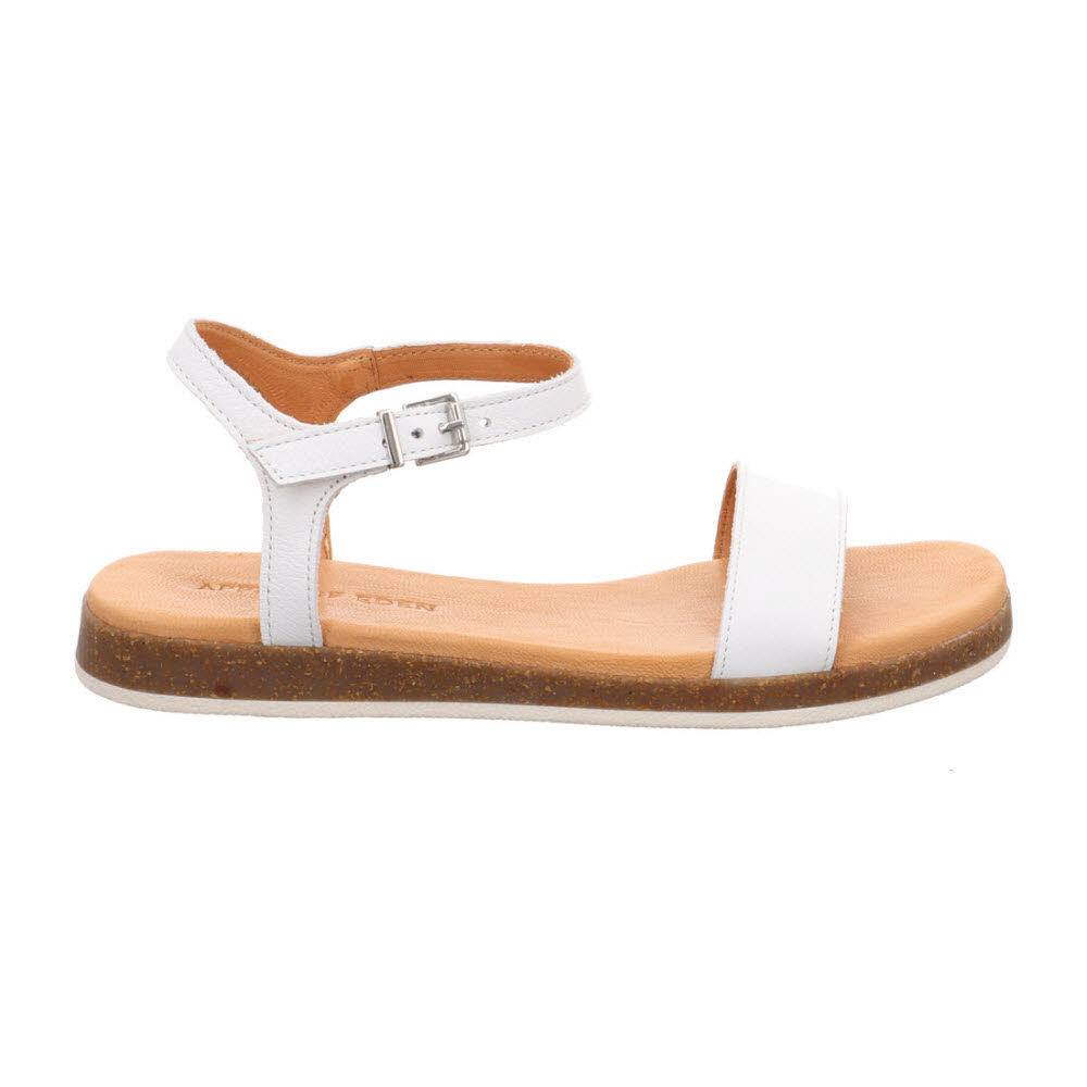 Garten-Schritt: Der Apple of Eden ISA Sandale SS26-ISA 83 in OFF WHITE spielt Leder-Look auf Leder-Basis aus; weiches Lederfutter und Lederdecksohle sorgt für Komfort, eine stabile Laufsohle mit gutem Halt für Standfestigkeit bei Urlaubsweg und Abendspaziergang; Als Ergänzung passen ASTER Sneaker (SS26-ASTER 28) sowie BRUNA Loafer (SS26-BRUNA 1).