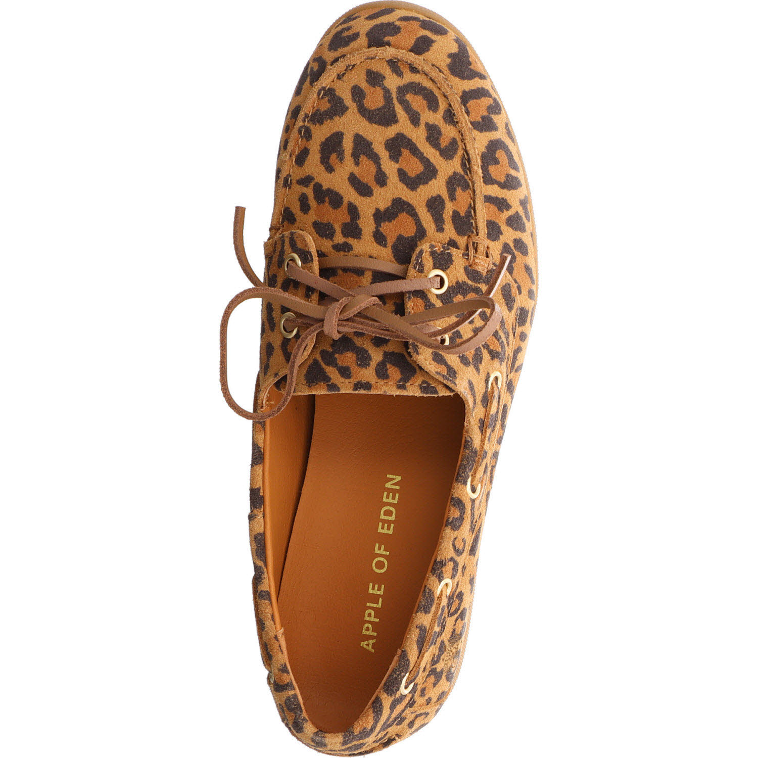 Garten-Tempo: Der Apple of Eden JOSIE Mokassin SS26-JOSIE 31.1 in LEO BROWN bringt Leichtigkeit in den Frühling – Velours-Touch auf Veloursleder, dazu weiches Lederfutter und Lederdecksohle und eine flexible Laufsohle mit Grip für Sommerbrunch und Straßenfest; Als Finish des Outfits eignen sich FLORE Sandale (SS26-FLORE 54) und BAANI Mokassin (SS26-BAANI 28).