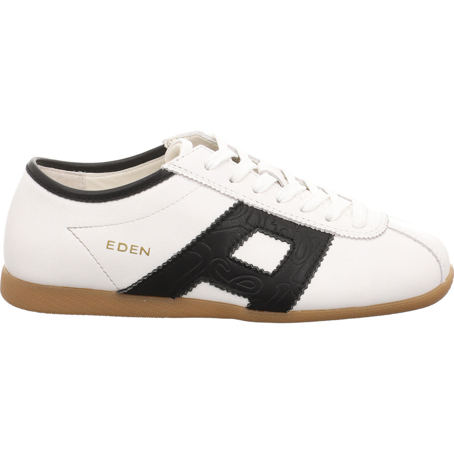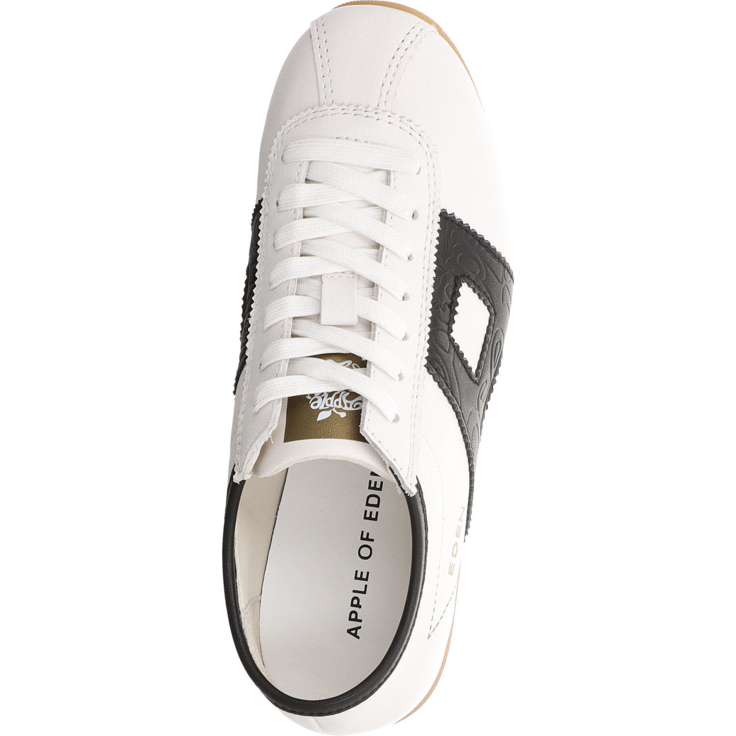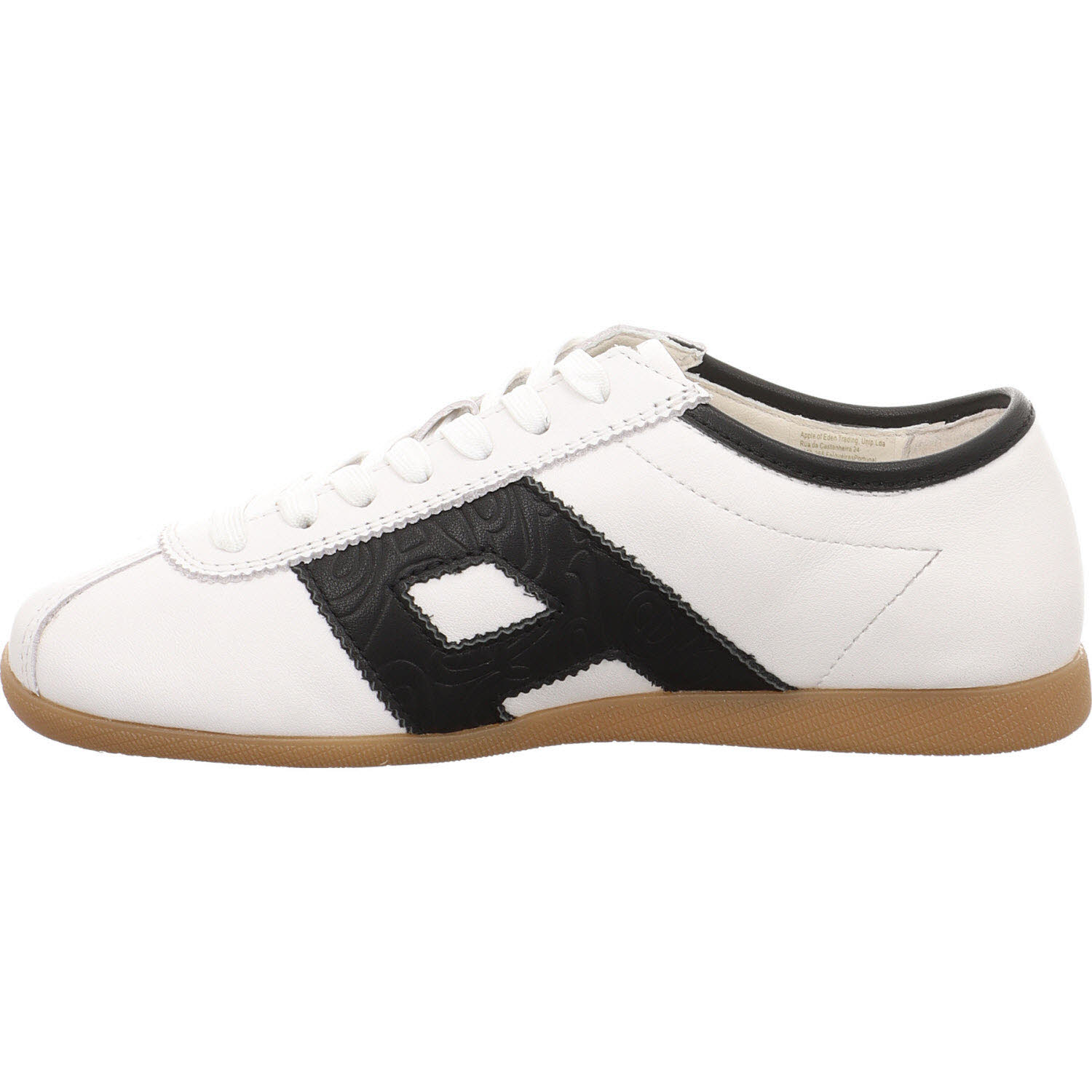 Schwarz/Weiß am Sneaker ist der Klassiker – der Apple of Eden MIYA macht ihn mit Leder-Mix statt Kunstleder. Schnürung, Lederfutter, Lederdecksohle, leichte Sohle. Funktioniert zu sportlichen und urbanen Outfits gleichermaßen: Jeans, schwarze Hose, Midi-Rock.