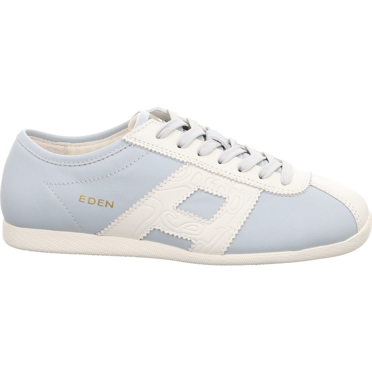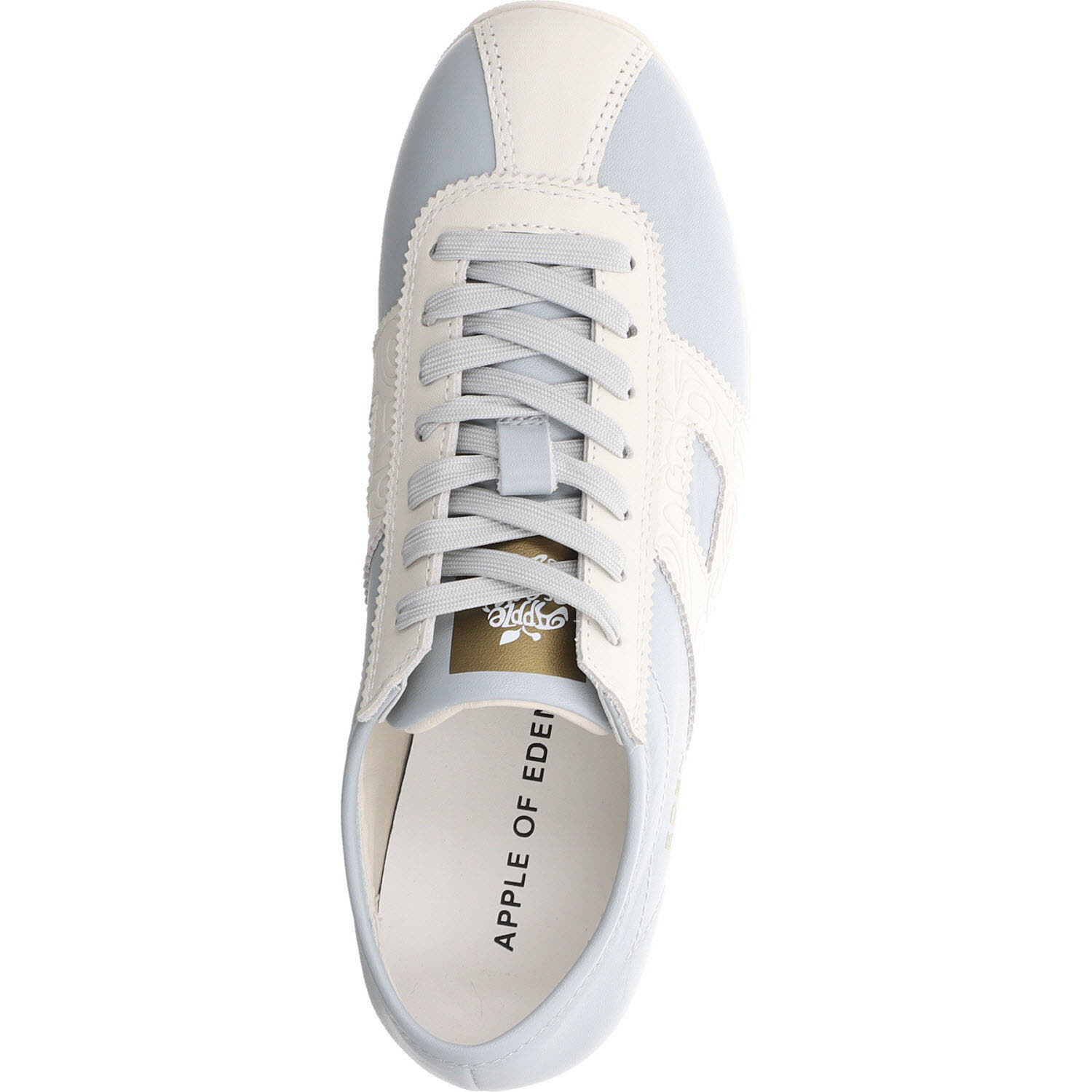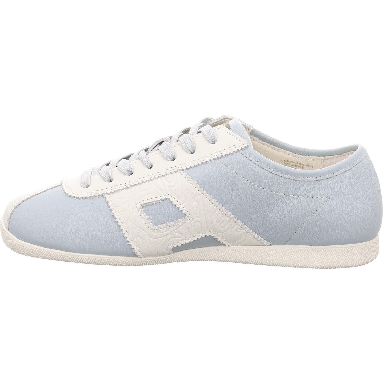Hellblau auf Rindleder: der Apple of Eden MIYA Sneaker in Celeste. Robuster als Velours und dadurch alltagstauglicher bei wechselndem Wetter. Schnürung, Lederfutter, Lederdecksohle, leichte Sohle. Sommerlich-frisch, passt zu weißer Hose, Denim, Creme-Kleid.