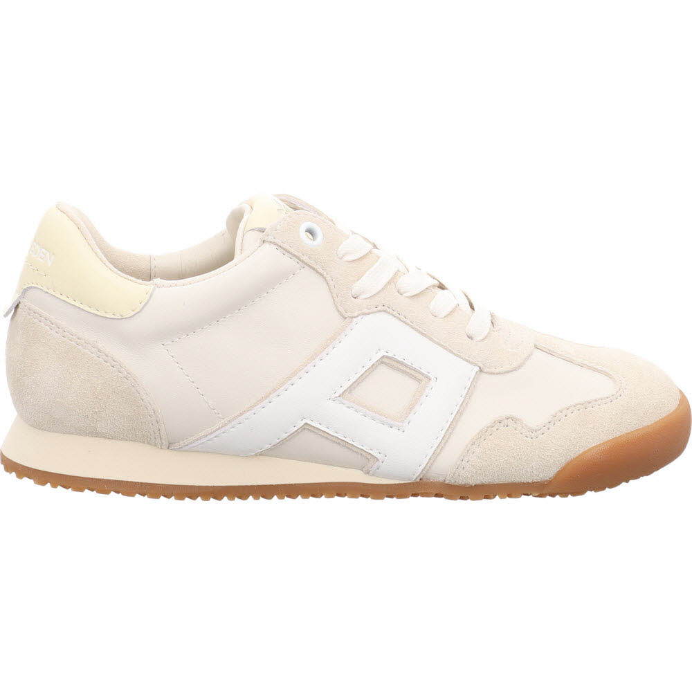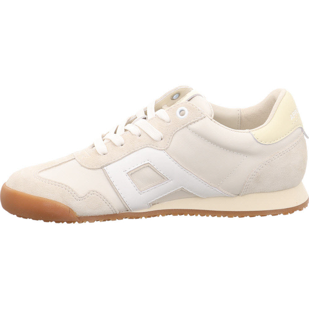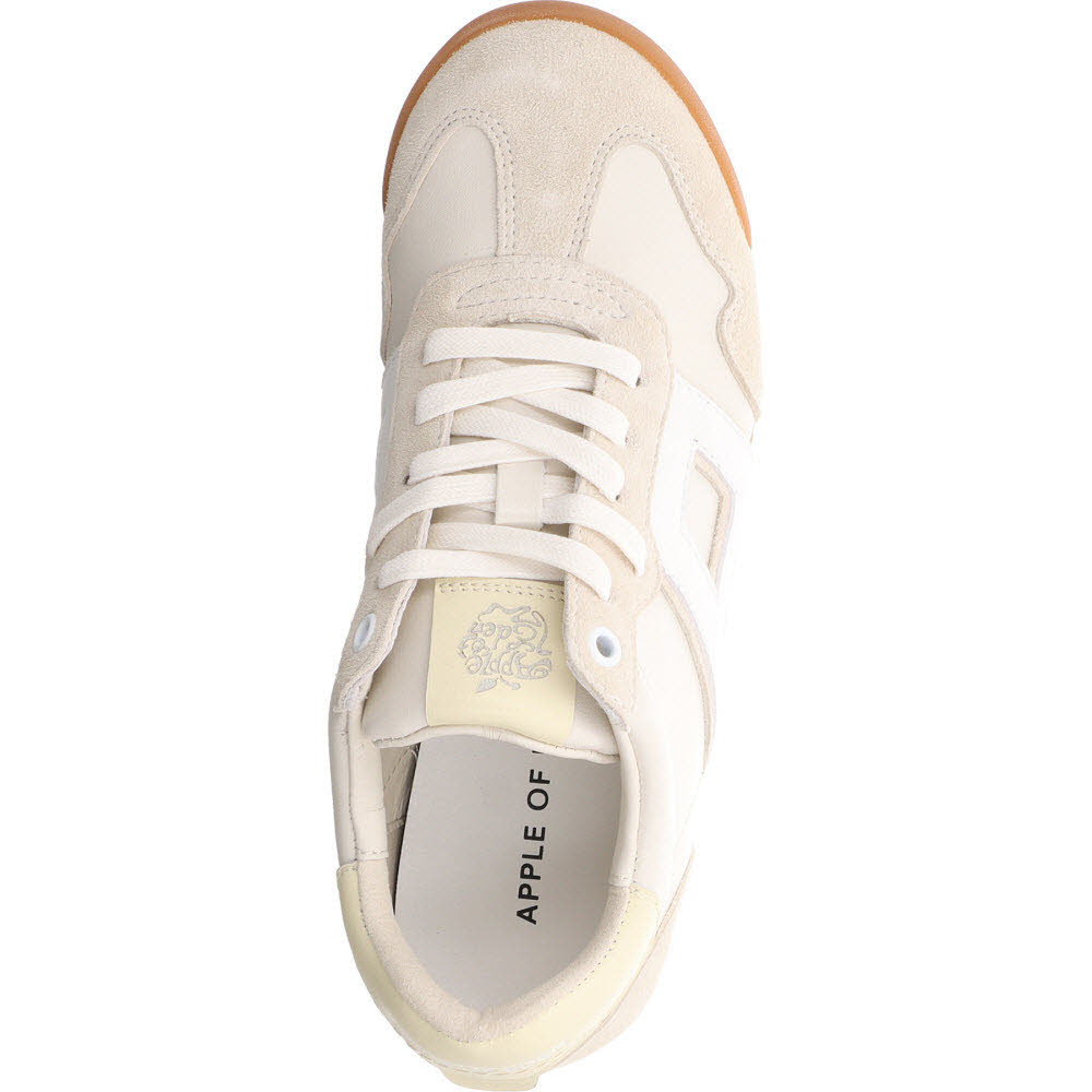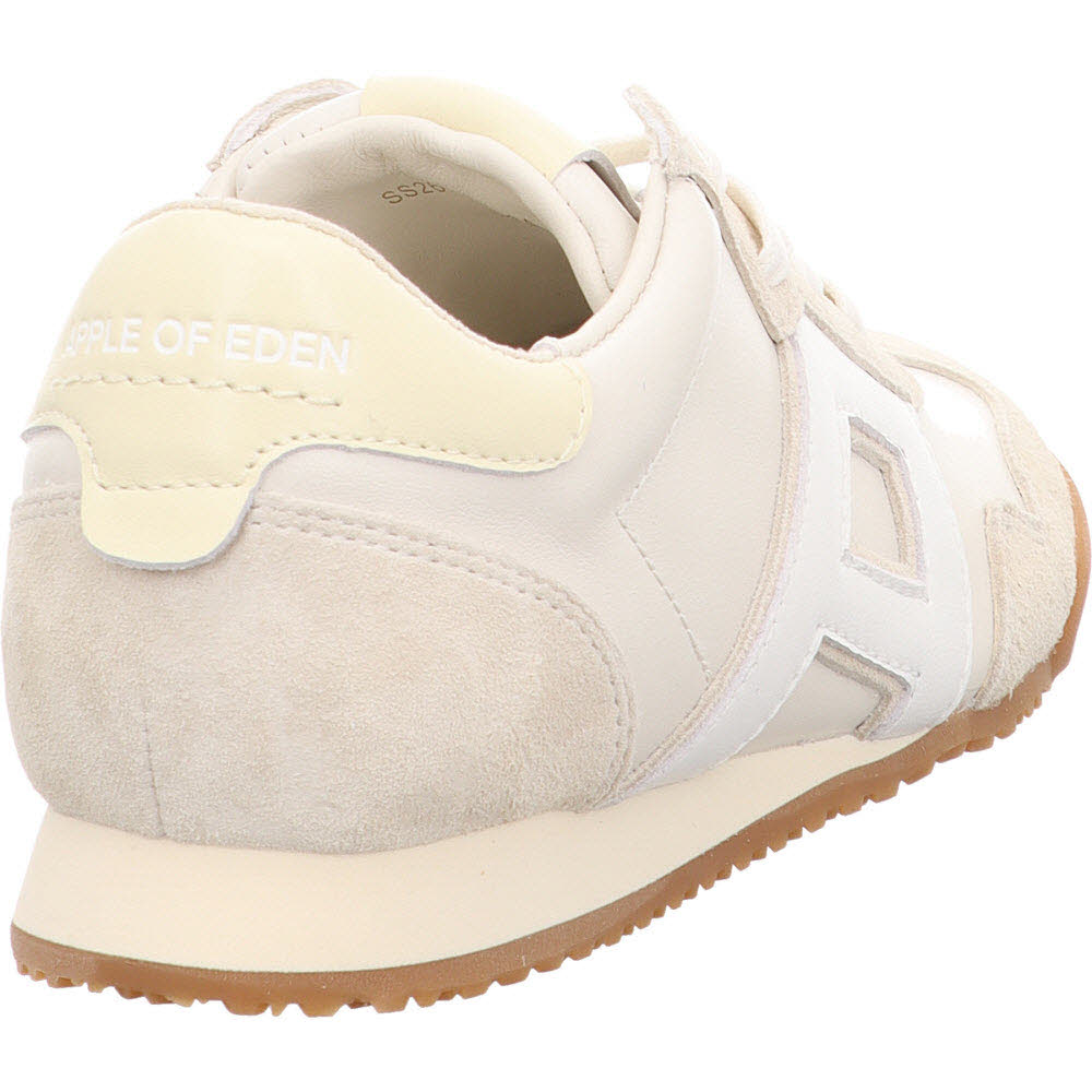 Fast weiß, aber wärmer: der Apple of Eden ODESSA Sneaker in Vanille aus Ziegenveloursleder. Die Velours-Oberfläche verhindert den Plastik-Look, den viele weiße Sneaker haben. Schnürung, Lederfutter, Lederdecksohle, leichte Sohle. Passt zu allem, was sommerlich und hell ist.
