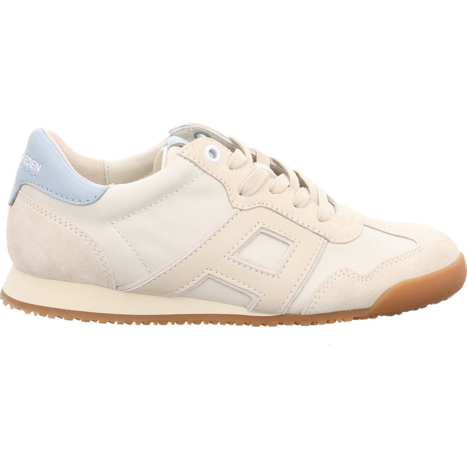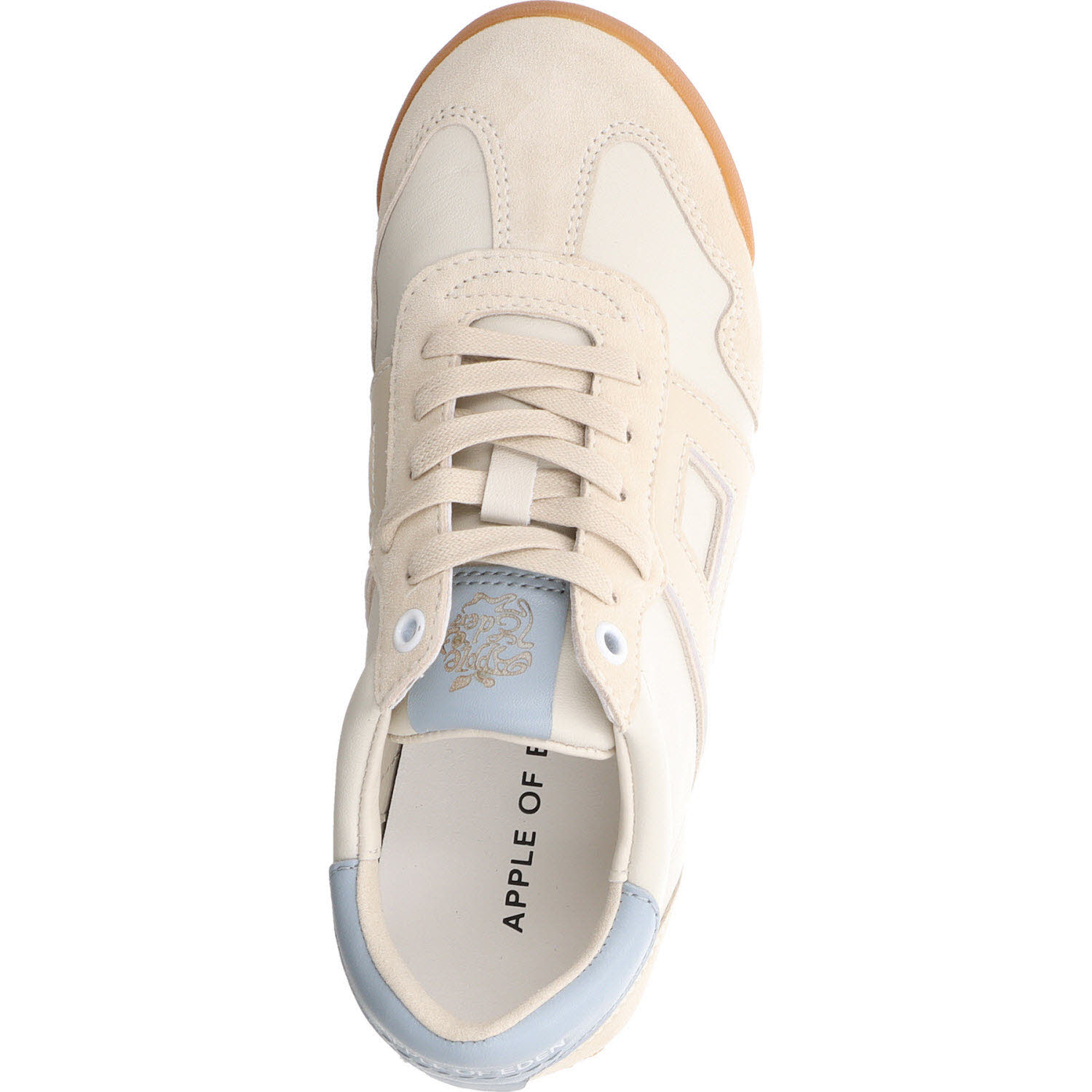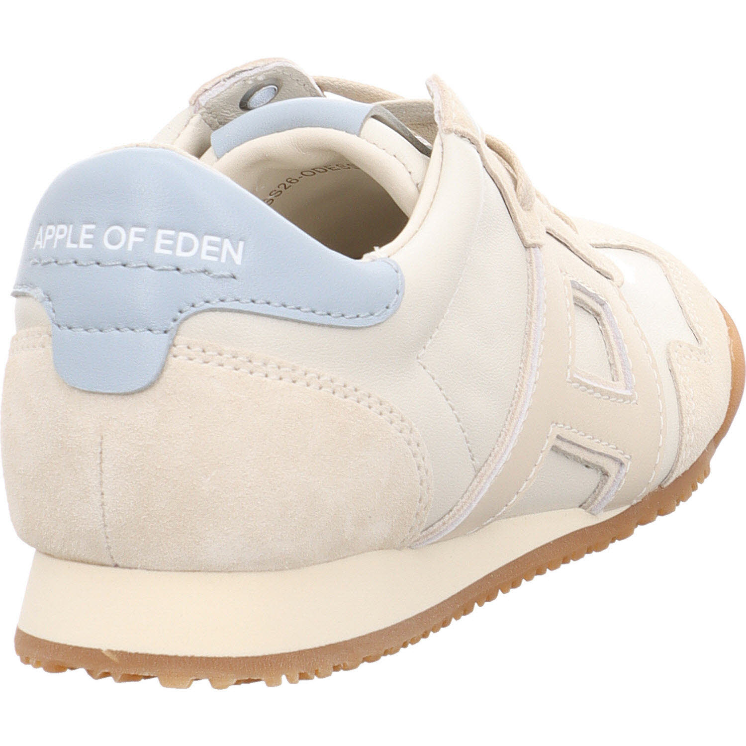 Zwei Töne, mehr Tiefe: der Apple of Eden ODESSA Sneaker in Hellblau und Creme auf Ziegenveloursleder. Die Farbkombination erzeugt eine Dimension, die monochrome Sneaker nicht bieten. Schnürung, Lederfutter, Lederdecksohle, leichte Sohle. Passt zu weißer Hose, Denim, Leinenkleid.