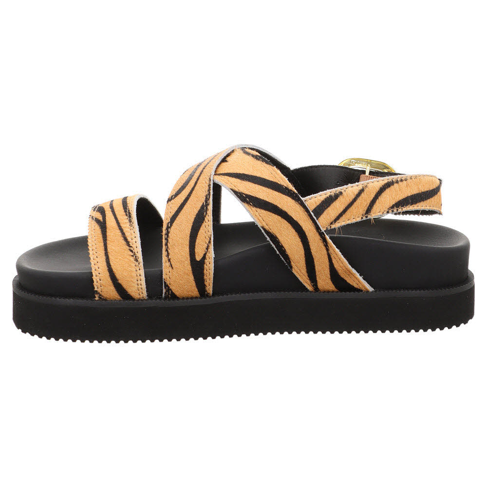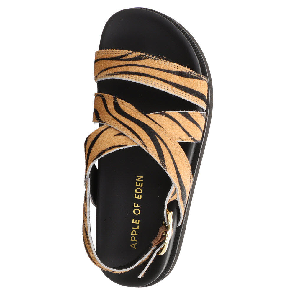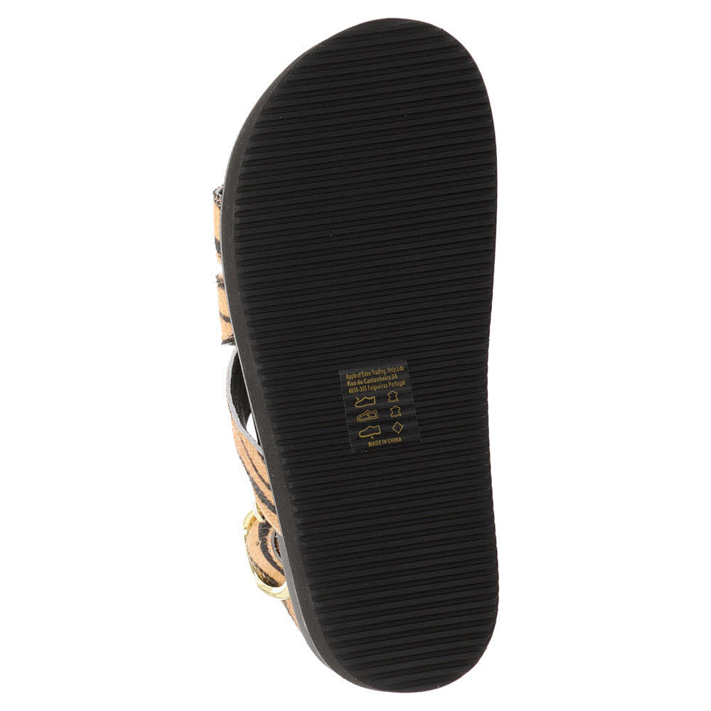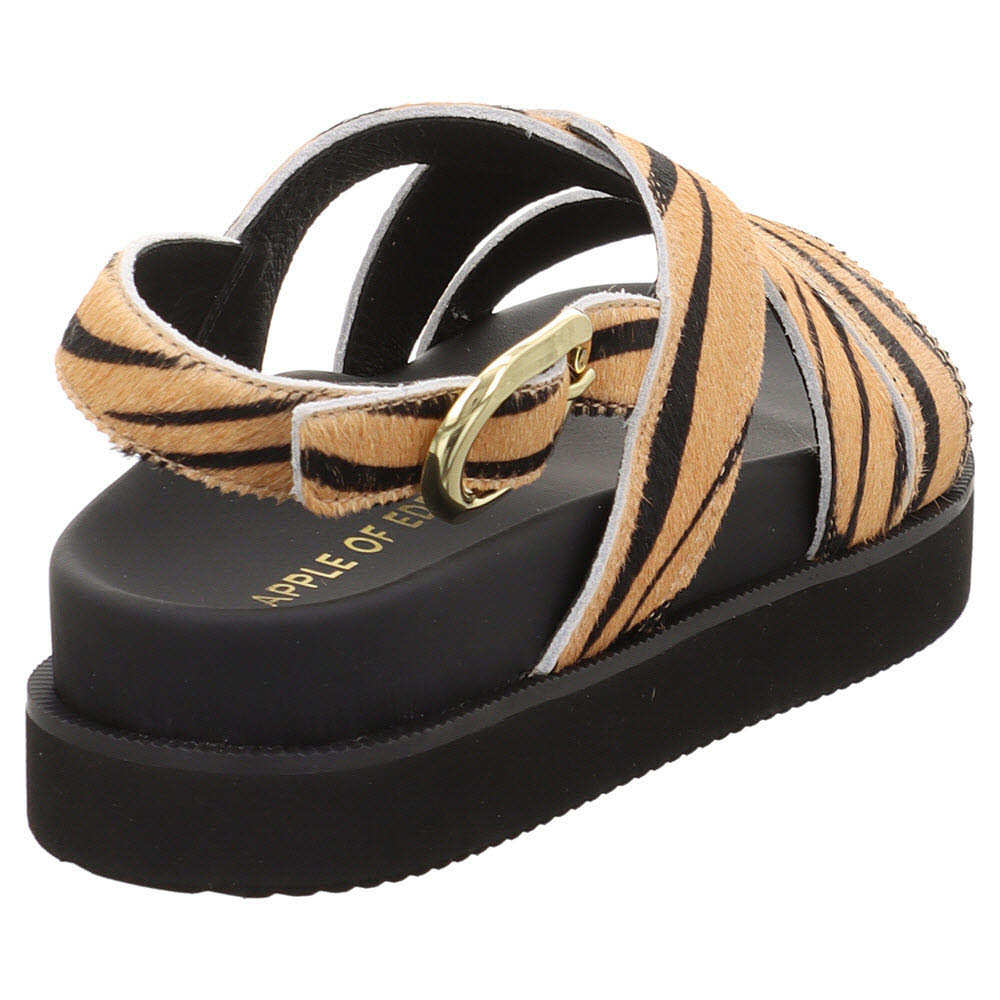 Café-Takt: Der Apple of Eden REESE Sandale SS26-REESE 80 in DK BEGE/BLACK spielt Leder-Look auf Rindleder-Basis aus; weiches Lederfutter und Lederdecksohle sorgt für Komfort, eine komfortable Laufsohle mit angenehmem Tritt für Standfestigkeit bei Office-Day und Feierabendrunde; Für ein stimmiges Duo empfehlen sich JOSIE Mokassin (SS26-JOSIE 41) und OLIVIA Sneaker (SS26-OLIVIA 83).