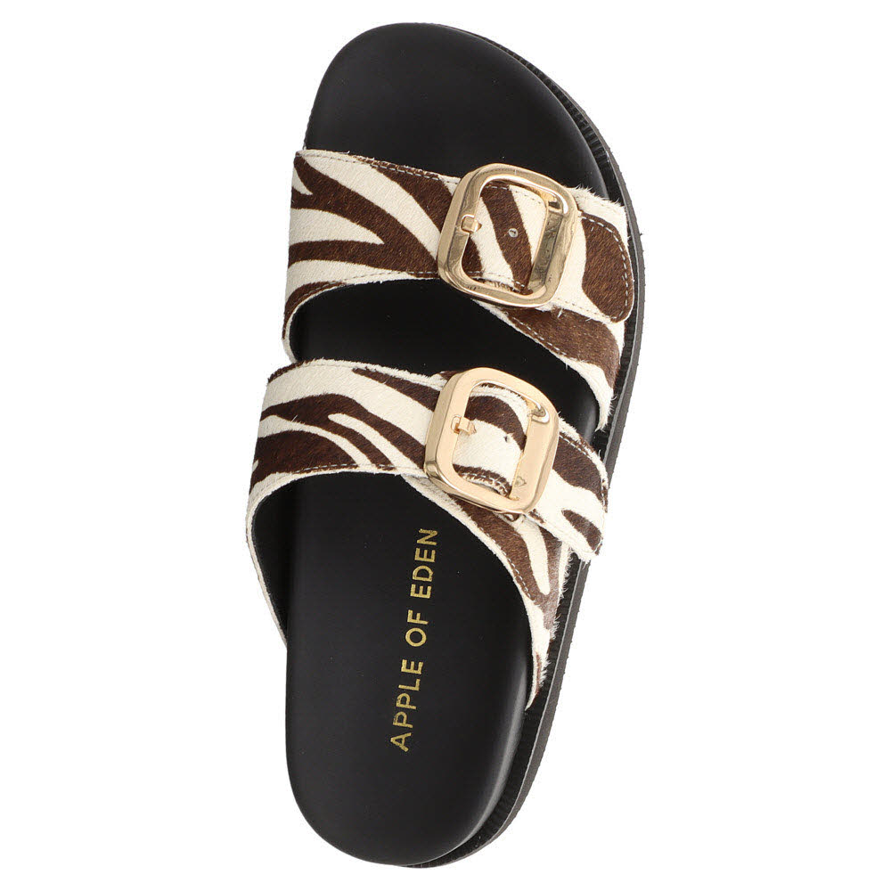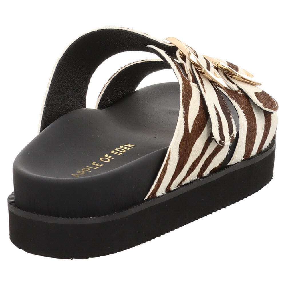 Café-Touch: Der Apple of Eden REYNA Sandale SS26-REYNA 2 in WHITE/BROWN wirkt Leder-Look und fühlt sich gleichzeitig entspannt an; Rindleder plus weiches Lederfutter und Lederdecksohle, dazu eine stabile Laufsohle mit gutem Halt – bereit für Urlaubsweg und Abendspaziergang; Für einen zweiten Look im Koffer: DEBRA Loafer (SS26-DEBRA 1.1) und AGNIS Pantolette (SS26-AGNIS 41).