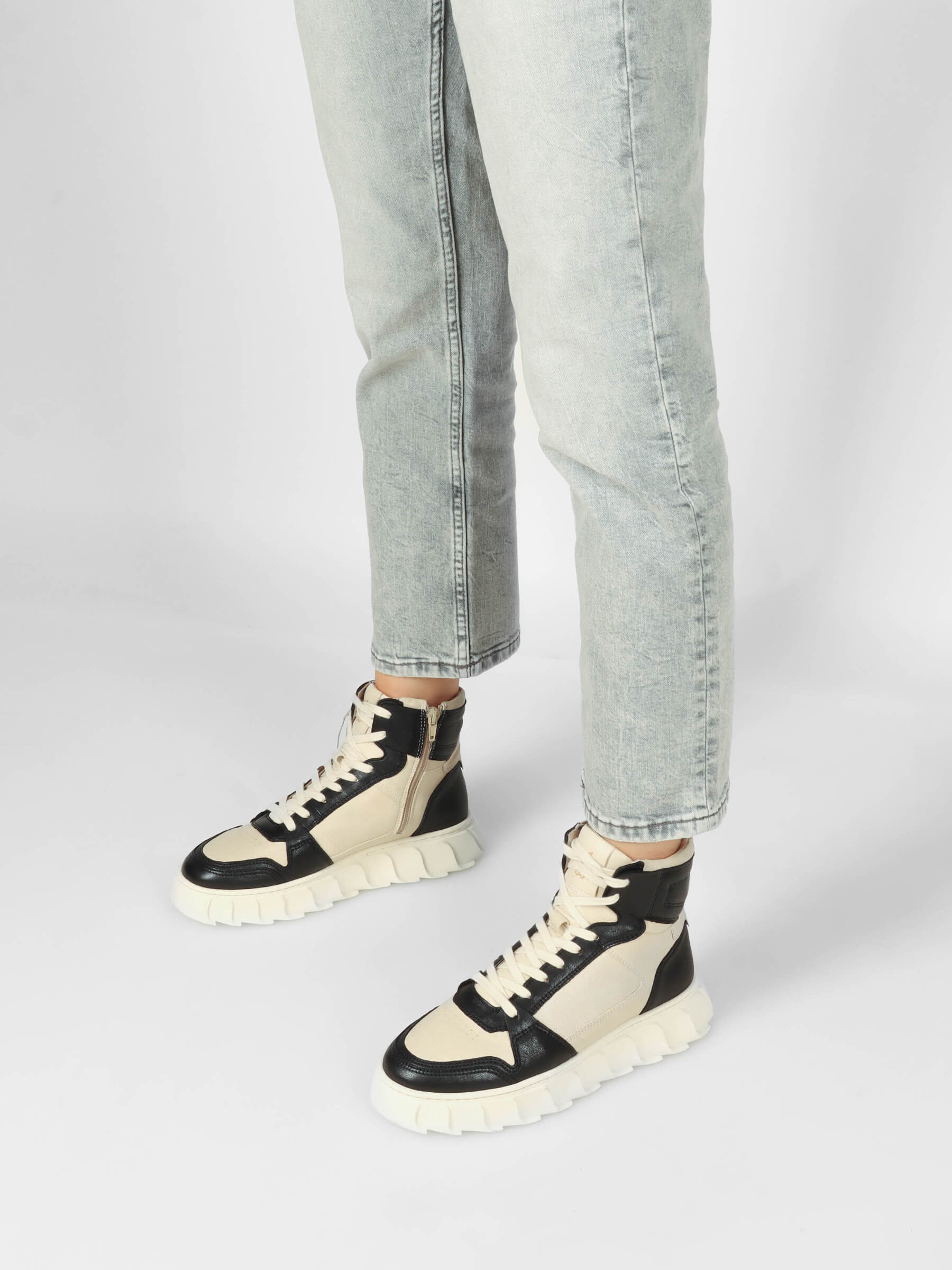 Sporty high-top trainers in a mix of materials with a striking sole and zip at the side
